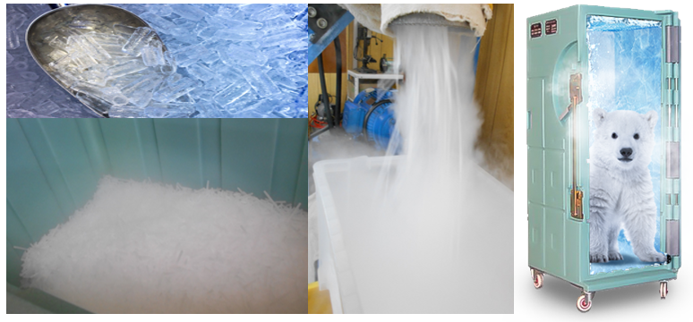 ドライアイスには、ブロックタイプ、ペレットタイプ、角ドライアイスなど