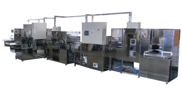 25kg角ドライアイスの加工から端材の再生まで、一気通貫で自動化した複合設備です。